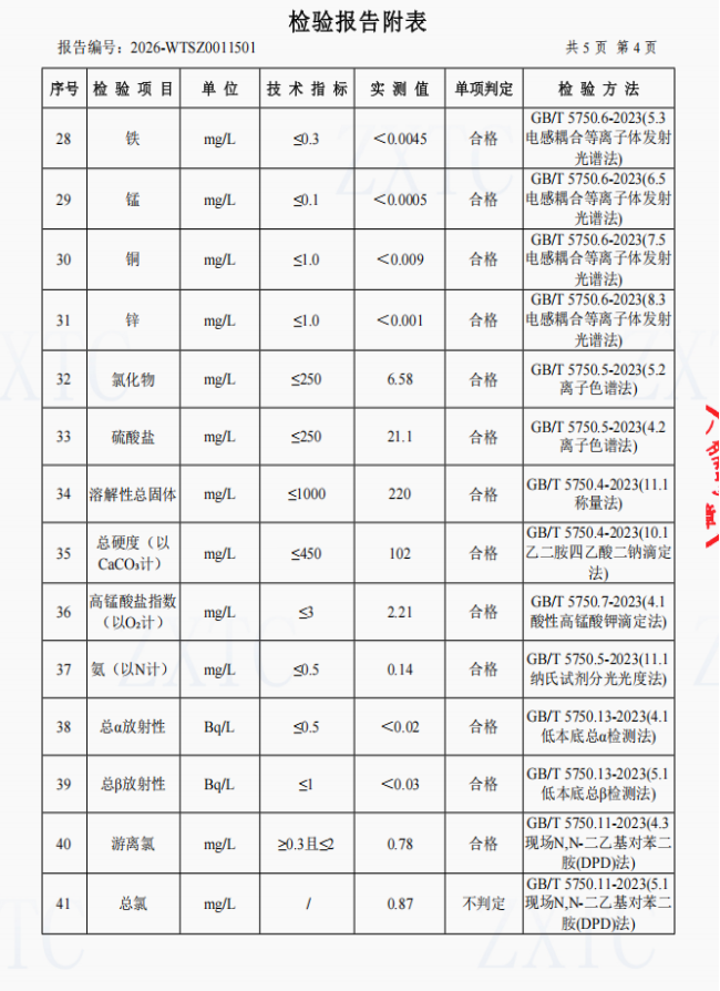 4、四方井水厂管网水(云阳县双江街道办事处)常规指标