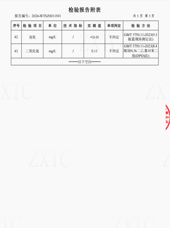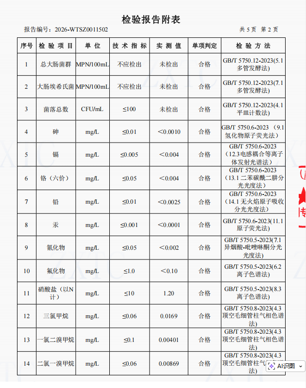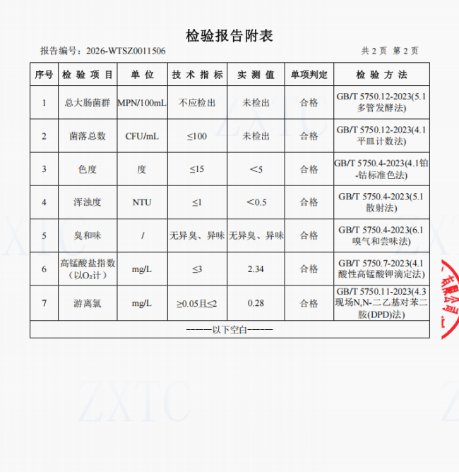 2、肖家湾水厂管网水(三峡梯城景区公厕)常规指标