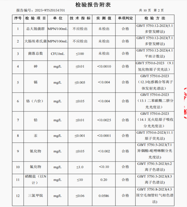 现将2025年11月肖家湾水厂、四方井水厂、二次供水、直饮水水质抽样监测结果公布如下: