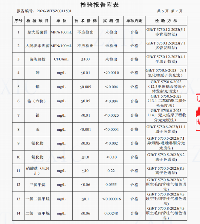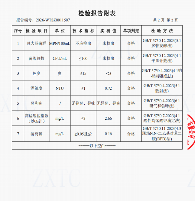 2、肖家湾水厂管网水(三峡梯城景区公厕)常规指标