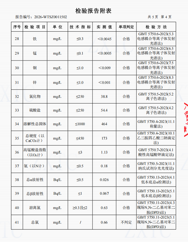 4、四方井水厂管网水(云阳县双江街道办事处)常规指标