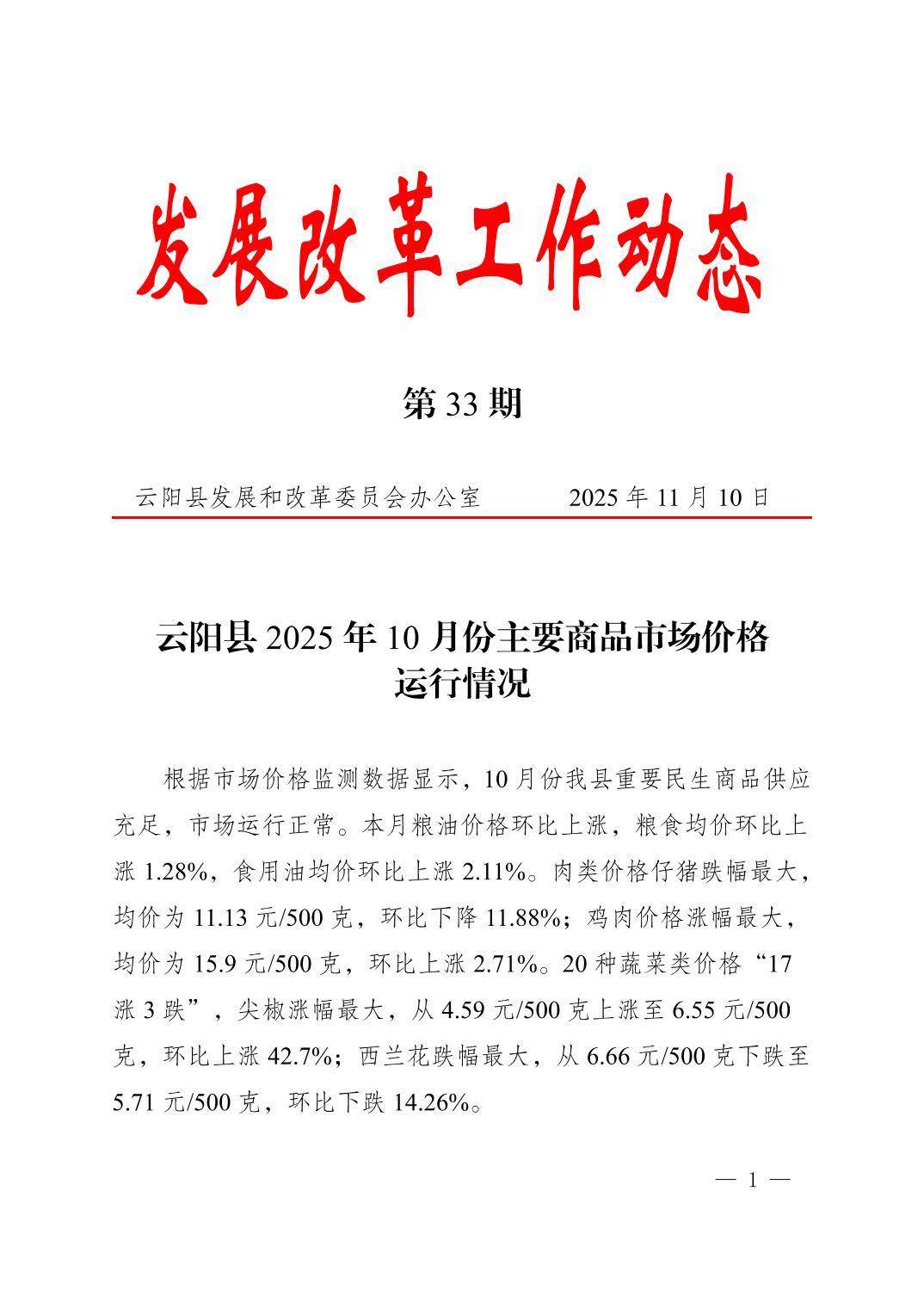 云阳县2025年10月份主要商品市场价格运行情况及走势分析
