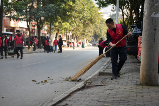 活动中,镇党委牵头部署,60余名机关党员、村(社区)党员组成攻坚队伍,划分8个专项小组,聚焦集镇主干道、村社背街小巷、房前屋后等重点区域精准发力,形成“全域覆盖、分工协作、干群联动”的整治格局。党员们手持扫帚、铁锹、垃圾夹等工具,细致清扫路面落叶尘土,清理绿化带内隐藏垃圾和废弃杂物,集中清运乱堆乱放的柴草垛、建筑垃圾,对23处长期积存的卫生死角进行彻底清零。整治热潮感染了周边群众,通过党员干部带头示范,不少村民主动加入清洁整治队伍,从“旁观者”变为“参与者”,累计清理各类垃圾近200斤垃圾,整治乱堆乱放28处,镇域环境面貌焕然一新。