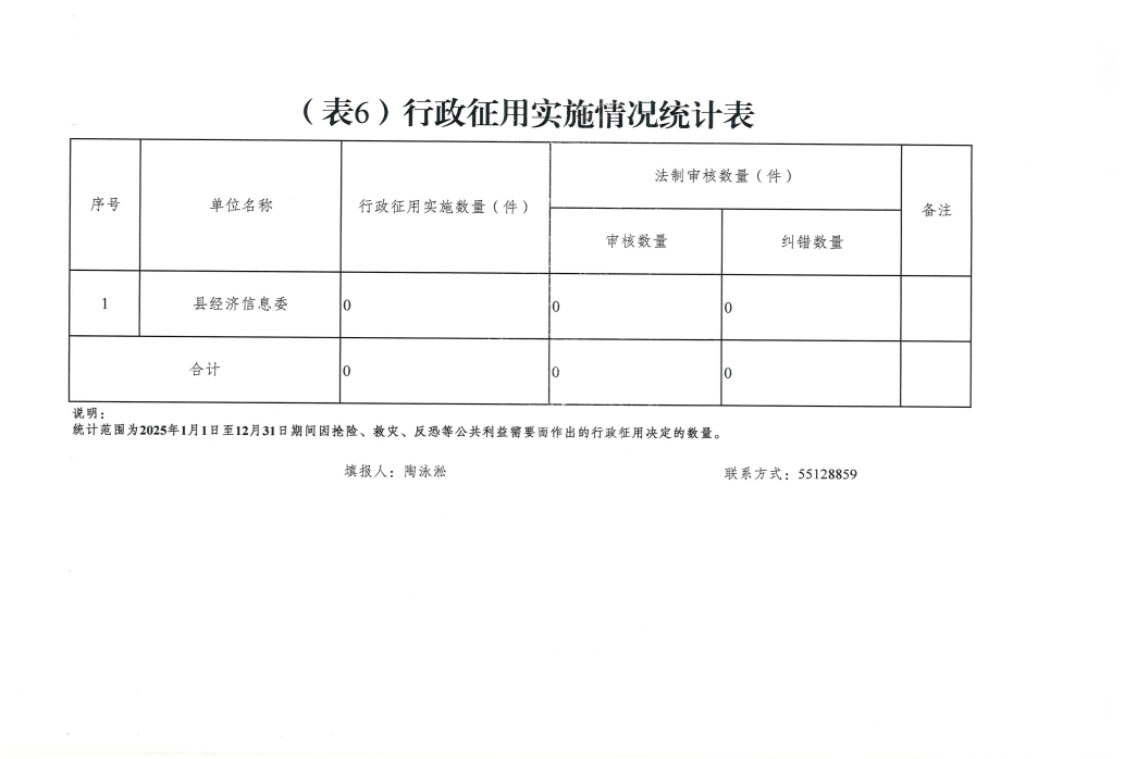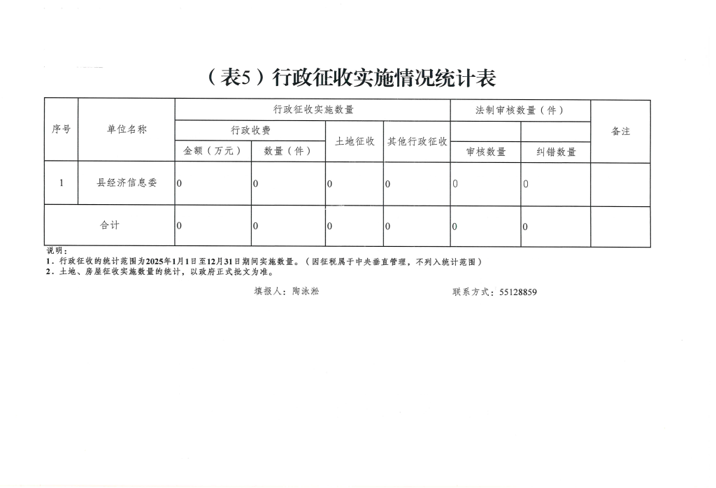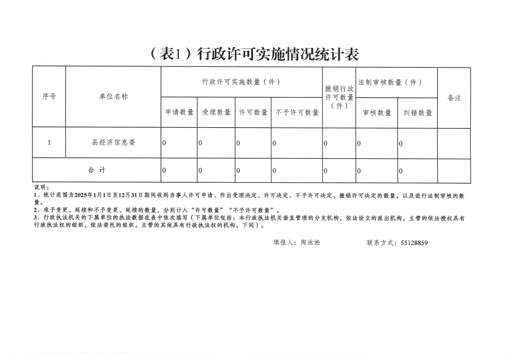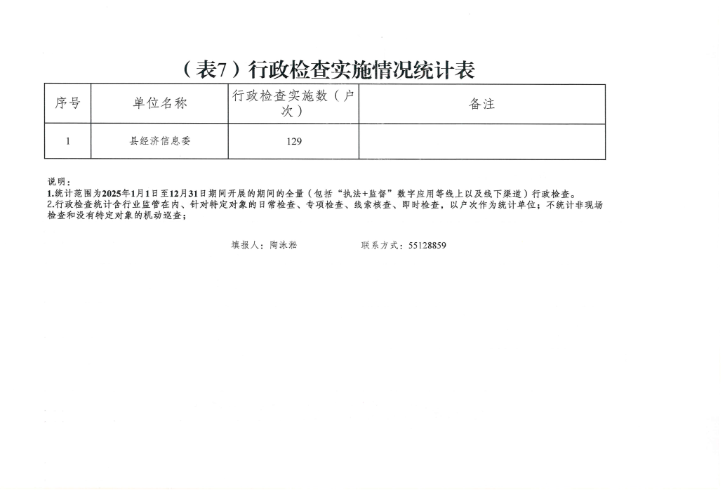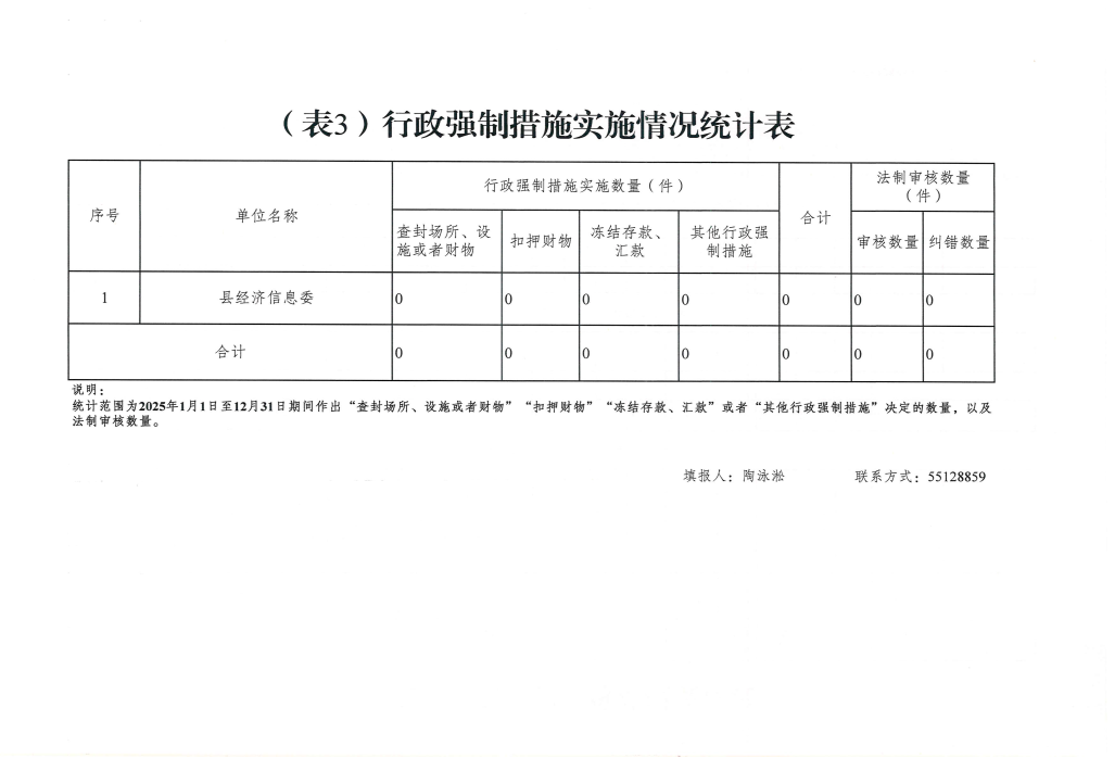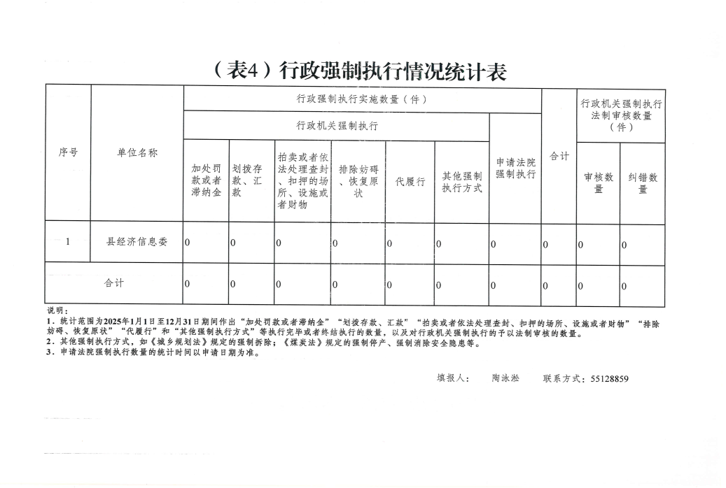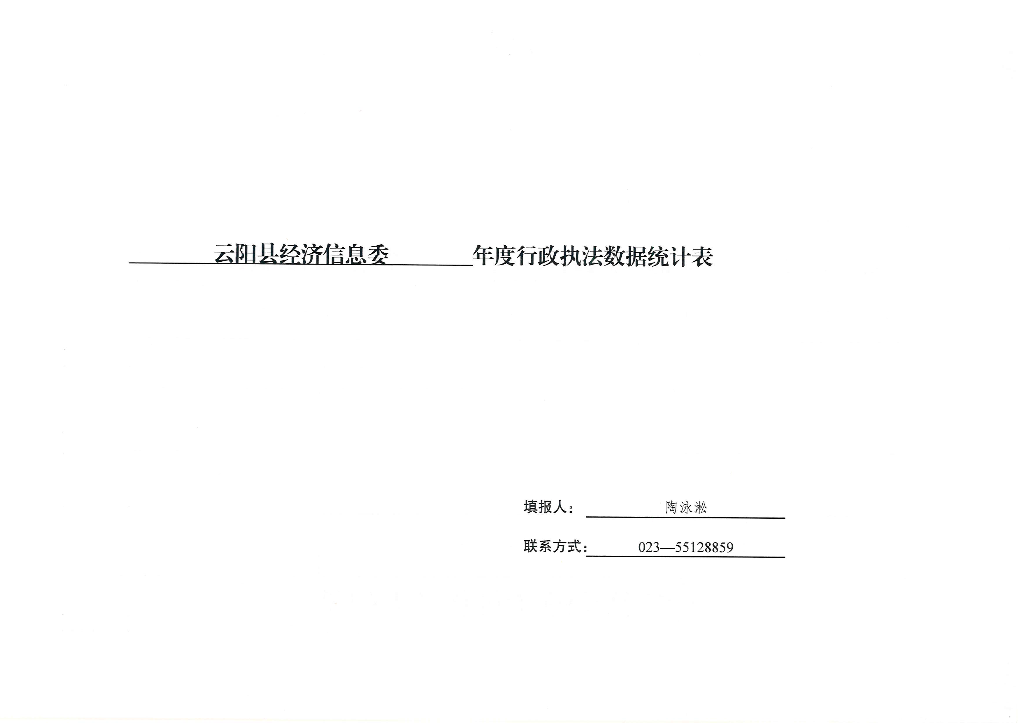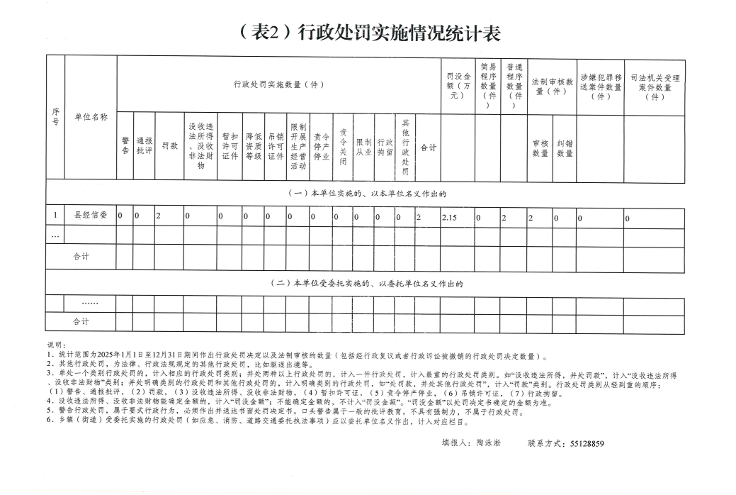 云阳县经济和信息化委员会2025年度行政执法数据统计表