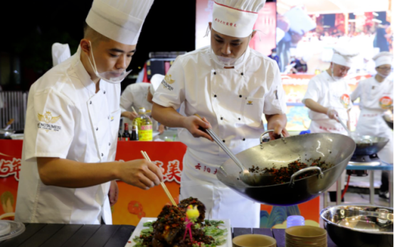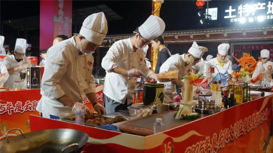 当晚,开州区烹饪协会、重庆市万州区三峡盛宴餐饮有限公司等县外参展企业,展示了牡丹灯影鱼片、孔雀迎宾、茶果子、仔姜鲜锅兔等特色菜品,让大家在互相交流中增进厨艺。