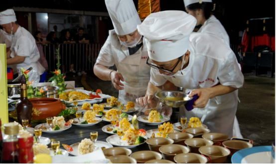 云阳网讯(记者 曾麒麟 李歆宇 向鹏城 杨力)9月26日晚,位于长江之畔的花园美食城灯火通明、香气满溢,云阳大河盐帮菜美食大比拼活动火热进行,20家本土盐帮菜餐饮企业的厨师们齐聚一堂,展手艺、亮绝活、烹美食,为大家带来一场视觉、嗅觉、味觉的美食盛宴。