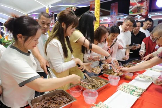 比赛结束后,现场随即开启美食品鉴环节。四十多道参赛菜品整齐摆放供观众免费品尝。观众们拿着餐盘逐一品尝,大河盐帮菜赢得一致好评,现场欢声笑语不断,烟火气与幸福感交织。