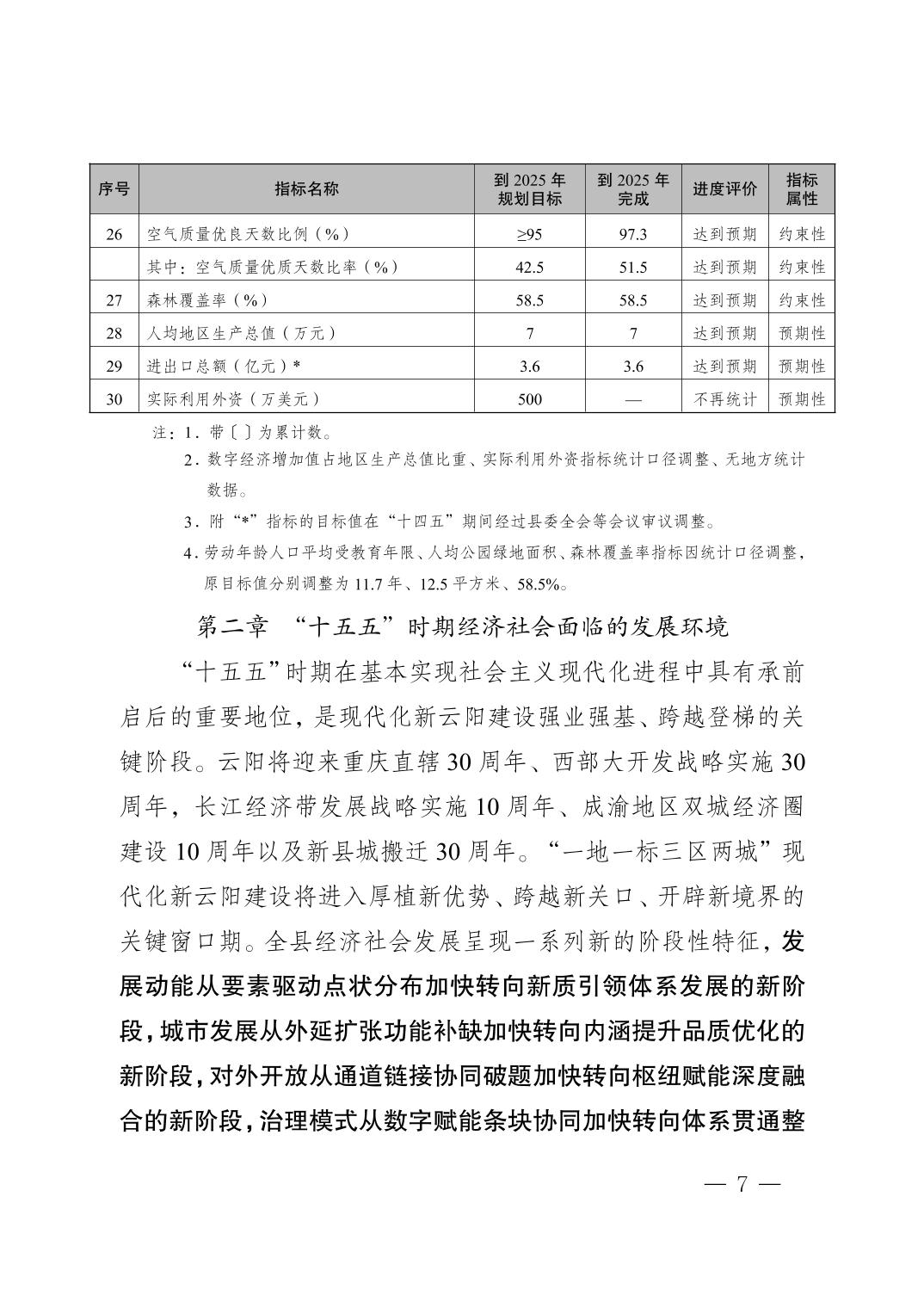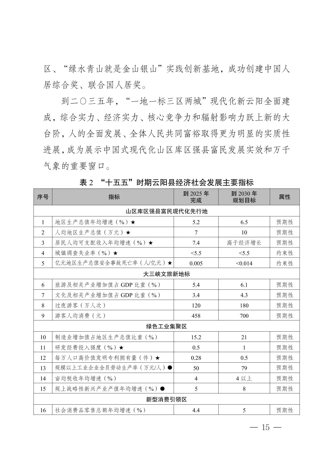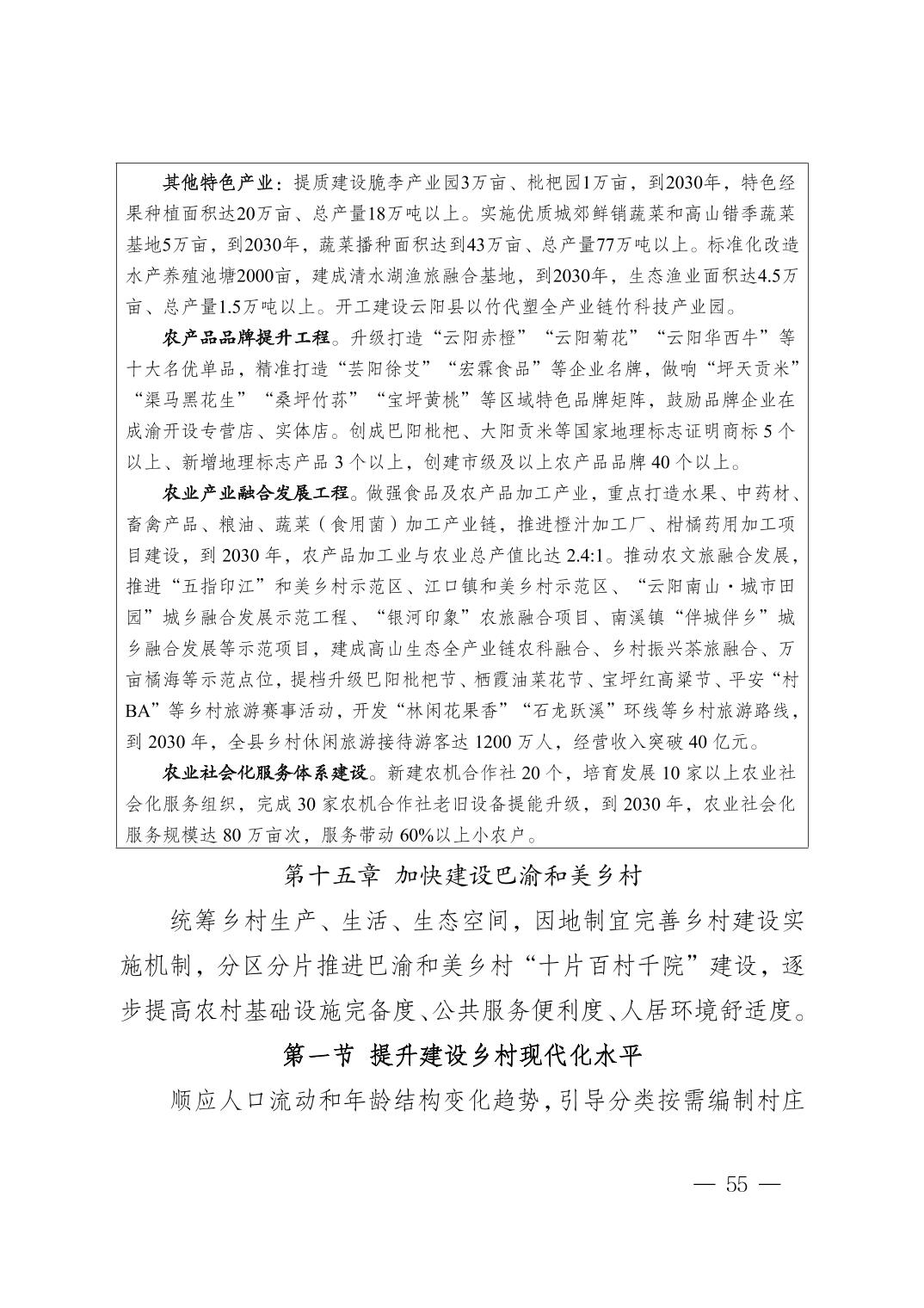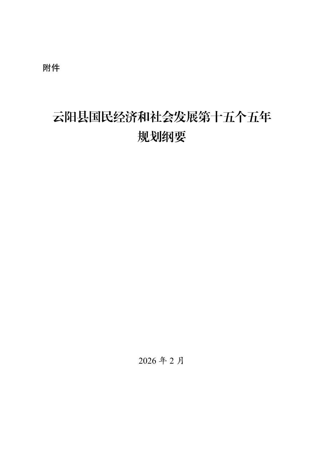 附件:云阳县国民经济和社会发展第十五个五年规划纲要