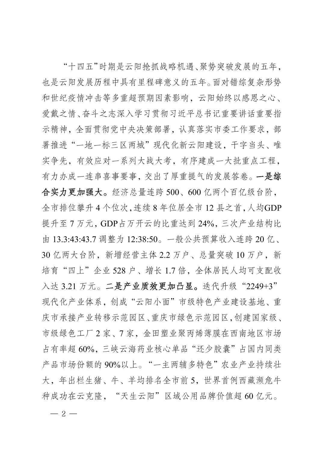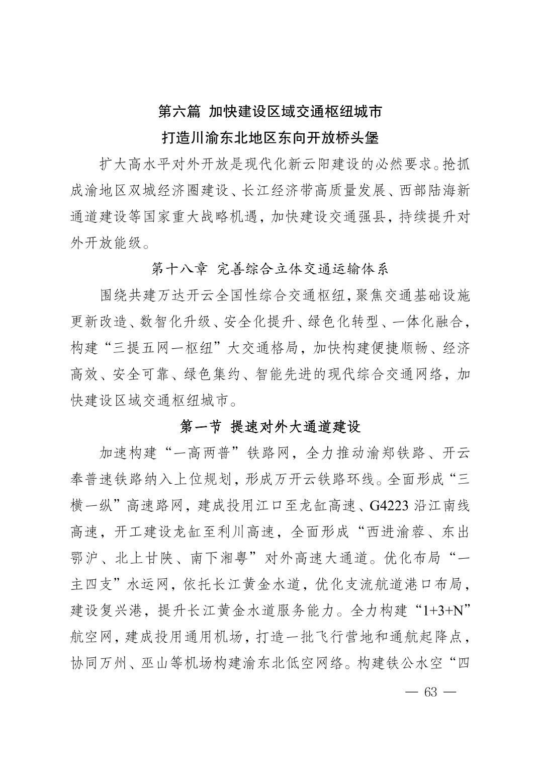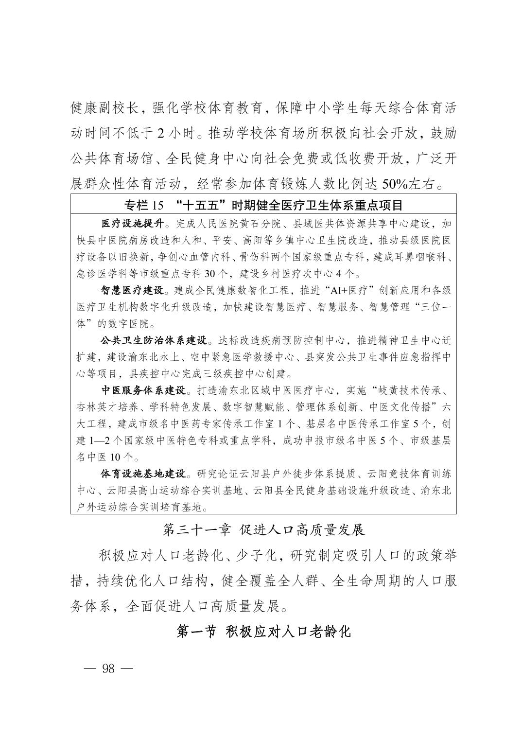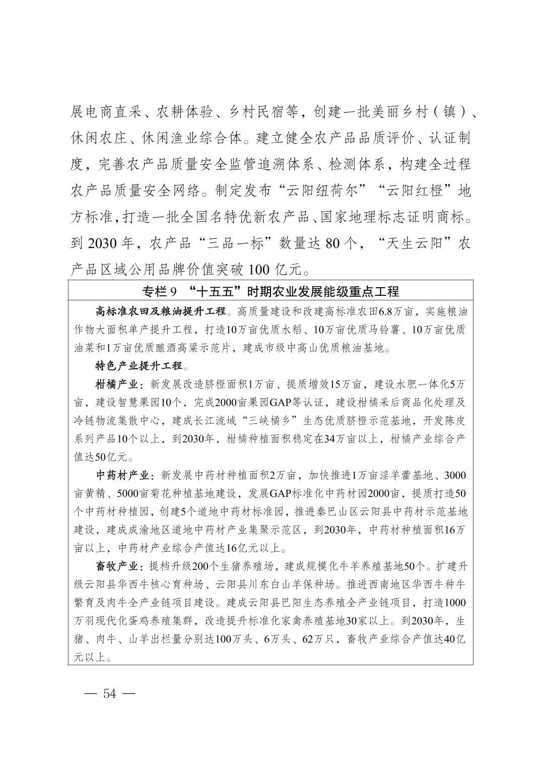 附件:云阳县国民经济和社会发展第十五个五年规划纲要