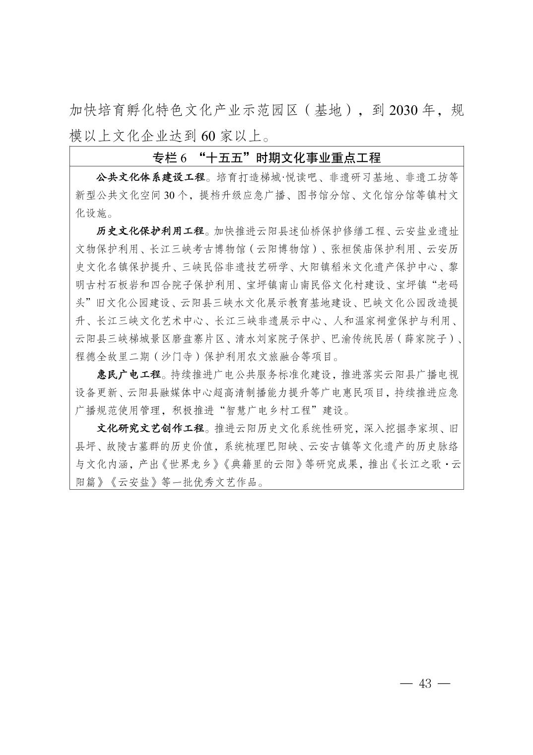 关于印发《云阳县国民经济和社会发展第十五个五年规划纲要》的通知