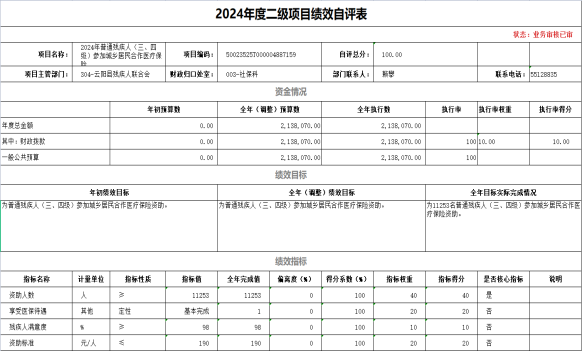 1.根据预算绩效管理要求,我单位对部门整体绩效和14个二级项目开展了绩效自评,都是以填报目标自评表形式开展自评,涉及财政拨款项目支出资金1744.57万元。从评价情况来看,所有项目的预算执行率达到了100%,并且不存在虚报冒领、套取、挤占、挪用和截留专项资金的情况。接下来我部门将继续按照预算绩效管理的相关规定,以绩效目标实现为导向,牢固树立“讲绩效、重绩效、用绩效”,“花钱必问效、无效必问责”的绩效管理理念,进一步增强支出责任和效率意识,全面加强预算管理。