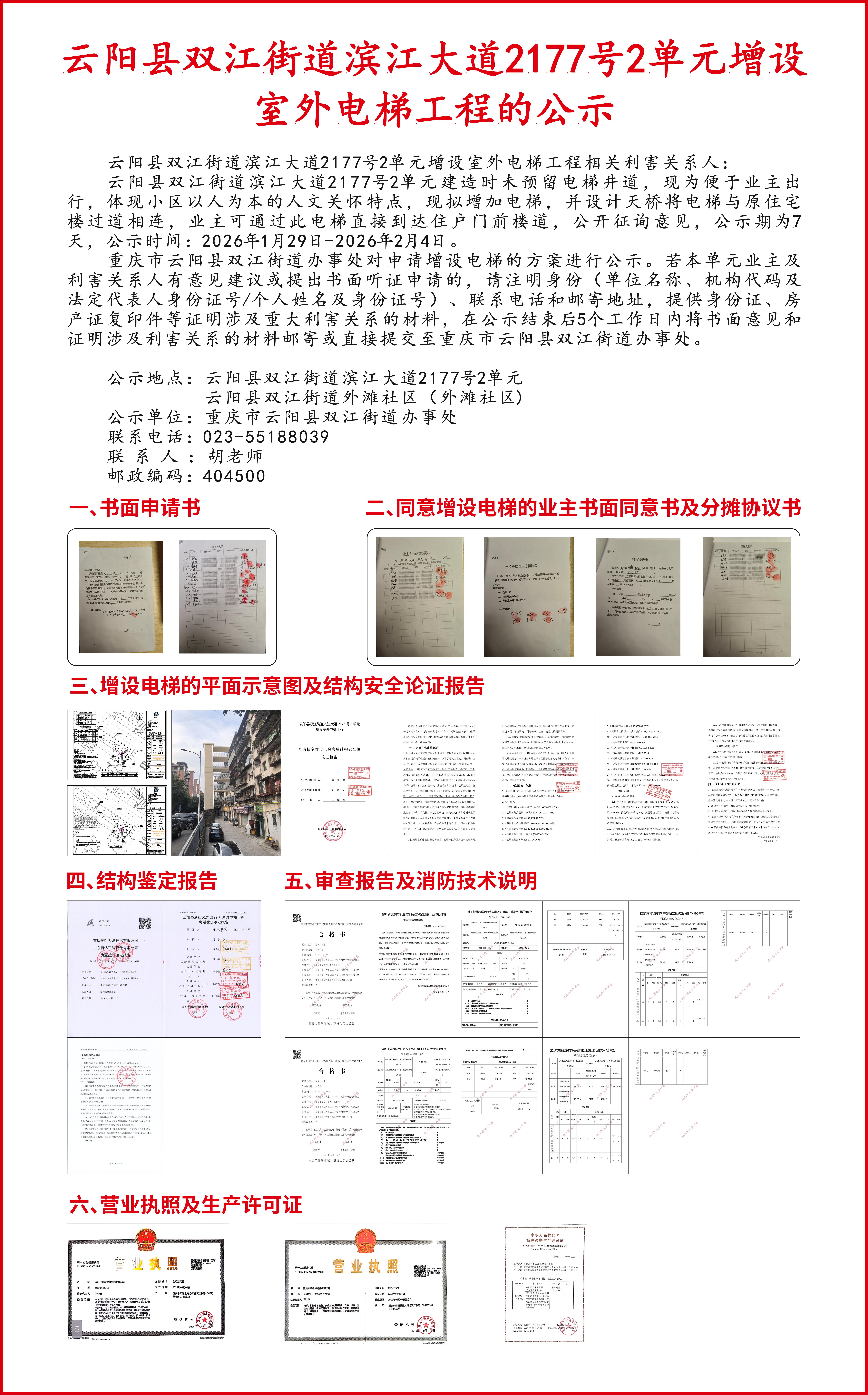 云阳县双江街道滨江大道2177号2单元增设室外电梯工程的公示