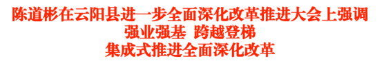 4月27日,云阳县进一步全面深化改革推进大会召开。县委书记陈道彬出席会议并讲话。他强调,要深入学习习近平总书记关于全面深化改革的重要论述,全面贯彻党的二十大和二十届历次全会精神和总书记视察重庆重要讲话重要指示精神,紧扣市委进一步全面深化改革推进大会精神,围绕全县“十五五”时期经济社会发展目标任务,以强业强基、跨越登梯的责任担当,推动集成改革持续深化拓展,为“一地一标三区两城”现代化新云阳建设增添强大动能。